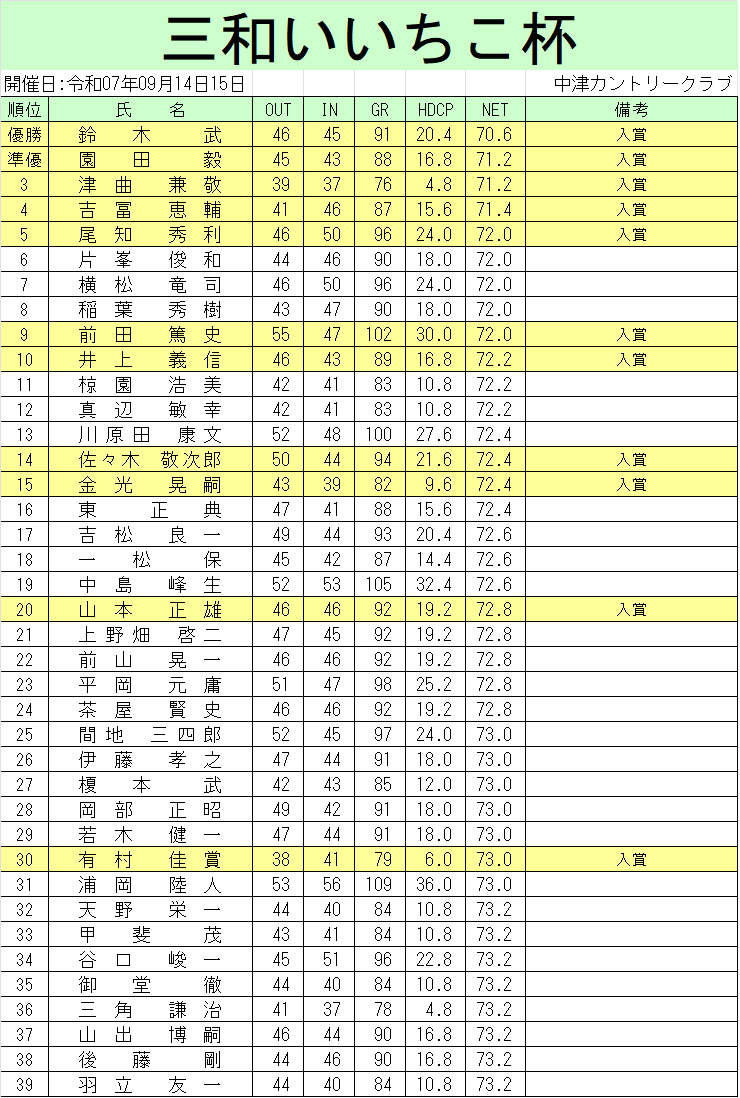 中津市ゴルフ大会