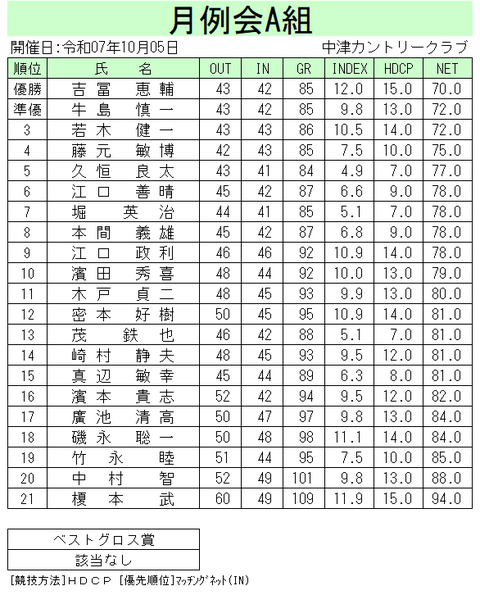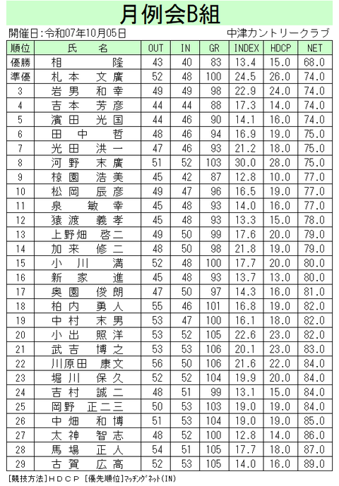 ・上記プレーイングハンディキャップ換算表はハンディキャップアローワンス100%で計算されております。